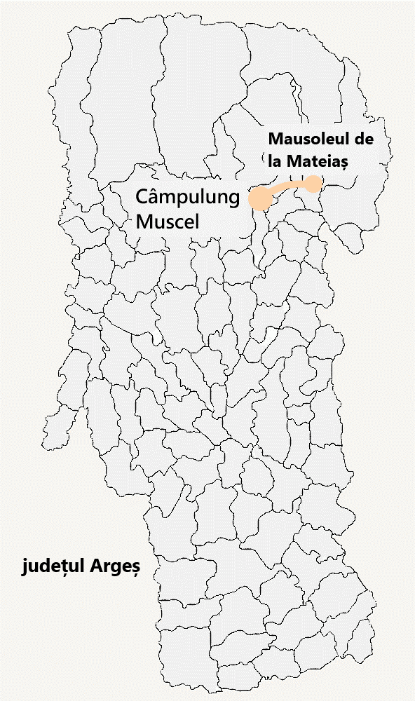 Este situat pe Drumul european E574 (DN 73), la 11 km de Câmpulung spre Braşov, pe Dealul Mateiaş.